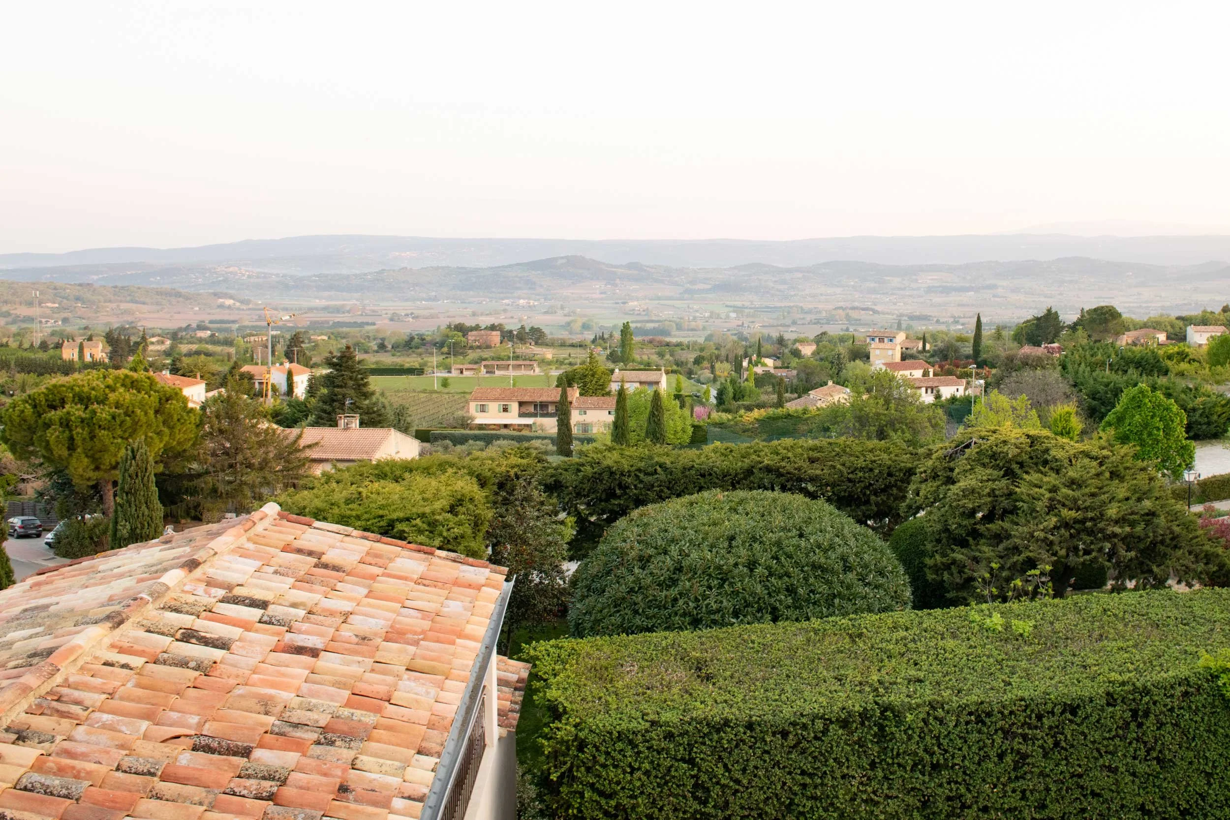 Stunning views across the terracotta roof tops of the valley and towards Mont Ventoux, above and below